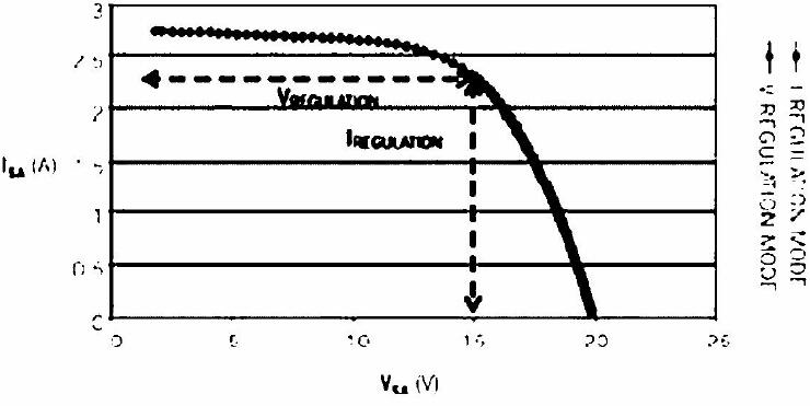 本電路適用于描述有兩種電源模式的光伏電池模塊的特性。采用本電路和基于PC的設(shè)置時, Helios公司的一種光伏電池模塊的I-V特性曲線表明有一個區(qū)在VMPP ( 最高點的電壓) 以上, 在VMPP 這一電壓下, 陡峭的過渡與一個電壓源相對應(yīng)( 圖2) 。在低于VMPP的電壓下, 光伏電池模塊猶如一個電流源。一般情況下, 用個簡單的電流模式電子負(fù)載描述I - V 特性曲線這一平坦區(qū)的特性是很困難的, 因為電壓輸出對電流的微小變化很敏感,因此, 恒定電壓模式負(fù)載就是一種較好的選擇。