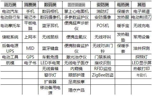 電池主要應用在消費類產(chǎn)品、數(shù)碼類產(chǎn)品、動力產(chǎn)品、醫(yī)療和安防等。