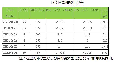 LED MOS管選型