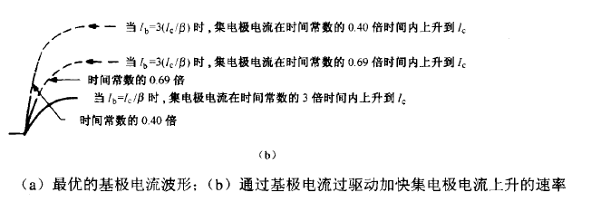 導(dǎo)通瞬間基極過(guò)驅(qū)動(dòng)峰值輸入電流/bl為了保證迅速導(dǎo)通集電極電流,需要有一個(gè)持續(xù)時(shí)間很短且峰值約為導(dǎo)通期間平均值2~3倍的基極尖峰電流供給基極。該尖峰的持續(xù)時(shí)間僅為最小導(dǎo)通時(shí)間的2%-3%,如圖8.2 (a )所示。