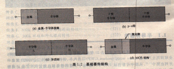 第三種基礎(chǔ)結(jié)構(gòu)是異質(zhì)結(jié)( heteroj unction interfade),如圖1.2Cc)所示,這是由兩種不同材料的半導(dǎo)體接觸形成的結(jié).例如,我們可以用砷化鎵和砷化鋁接觸來形成一個(gè)異質(zhì)結(jié).異質(zhì)結(jié)是快速器件和光電器件的關(guān)鍵構(gòu)成要素