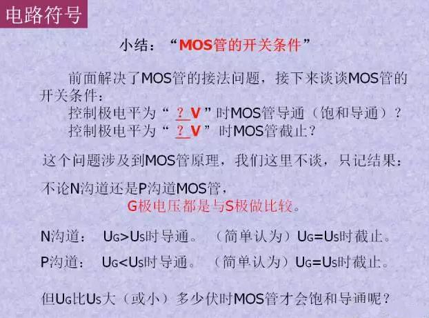 MOS管為壓控元件,你只要加到它的壓控元件所需電壓就能使它導(dǎo)通,它的導(dǎo)通就像三極管在飽和狀態(tài)一樣,導(dǎo)通結(jié)的壓降最小.這就是常說的精典是開關(guān)作用.去掉這個(gè)控制電壓經(jīng)就截止. MOS管 MOS管的英文全稱叫MOSFET(Metal Oxide Semiconductor Field Effect Transistor),即金屬氧化物半導(dǎo)體型場效應(yīng)管,屬于場效應(yīng)晶體管中的絕緣柵型。因此,MOS管有時(shí)被稱為場效應(yīng)管。在一般電子電路中,MOS管通常被用于放大電路或開關(guān)電路。而在主板上的電源穩(wěn)壓電路中,MOSFET扮演的角色主要是判斷電位,它在主板上常用“Q”加數(shù)字表示。