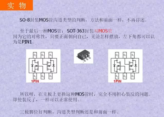 目前主板或顯卡上所采用的MOS管并不是太多,一般有10個(gè)左右,主要原因是大部分MOS管被整合到IC芯片中去了。由于MOS管主要是為配件提供穩(wěn)定的電壓,所以它一般使用在CPU、AGP插槽和內(nèi)存插槽附近。其中在CPU與AGP插槽附近各安排一組MOS管,而內(nèi)存插槽則共用了一組MOS管,MOS管一般是以兩個(gè)組成一組的形式出現(xiàn)主板上的。