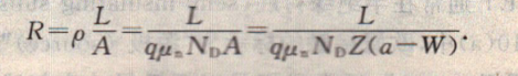其中ND是施主濃度.A[=z(a一W)]是電流流動(dòng)的截面積,而w是肖特基勢壘的耗盡區(qū)寬度.
