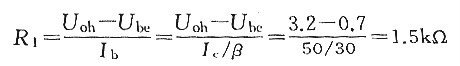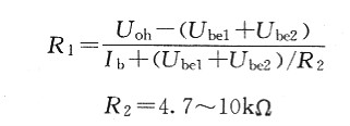 在圖7—6(a)所示電路中,R2普通可取4.7~10kΩ,簡(jiǎn)化時(shí)也可不用。R1的選取應(yīng)使晶體管取得足夠的基極電流而到達(dá)飽和。設(shè)繼電器KA的工作電流為Ic=50mA,晶體管的β=30,而普通CMOS輸出高電平Uoh =2. 7~4. 2V,則