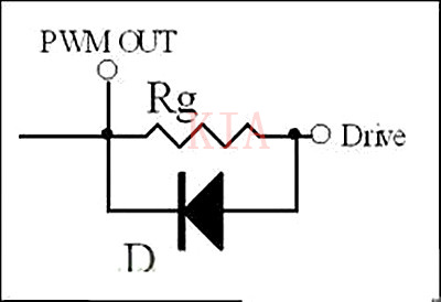 通常為了保證快速瀉放,在Rg上可以并聯(lián)一個二極管。當瀉放電阻過小,由于走線電感的原因也會引起諧振(因此有些應用中也會在這個二極管上串一個小電阻),但是由于二極管的反向電流不導通,此時Rg又參與反向諧振回路,因此可以抑制反向諧振的尖峰。