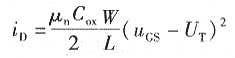 式中,UT為開啟電壓(或閾值電壓);μn為溝道電子運動的遷移率;Cox為巾位面積柵極電容;W為溝道寬度;疋為溝道長度;W/L為MOSFET的寬長比。在MOSFET集成電路設計中,寬長比是一個極為重要的參數(shù)。
