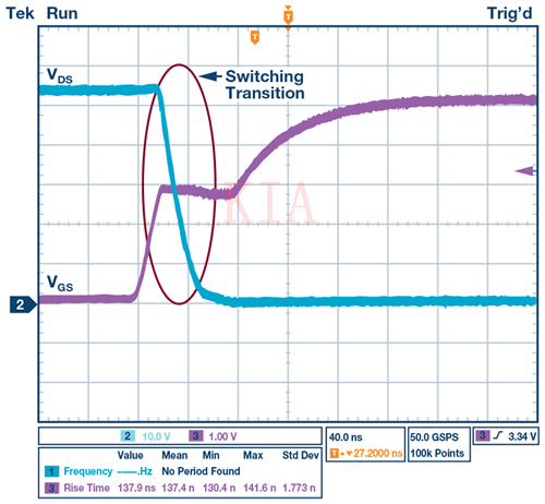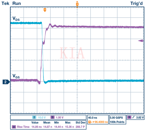 圖2.無(wú)柵極驅(qū)動(dòng)器的MOSFET導(dǎo)通轉(zhuǎn)換