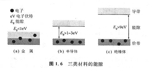 就材料的導(dǎo)電性而言,大致可以分為絕緣體、半導(dǎo)體、導(dǎo)體三大類(圖1.5),無論哪種材料,都有一定的電阻,另外還有一類沒有