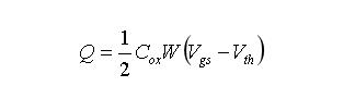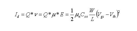 電流的其中一種定義是單位時間內(nèi)通過導體橫截面的總電荷數(shù)(載流子數(shù)目),即沿著電流方向電荷密度和速度的乘積。工作在飽和區(qū)的NMOS管,其平均電荷密度可以表示為: