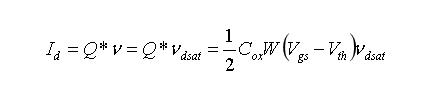 公式1.4是在晶體管的溝道電場強度E比較低時成立。當晶體管溝道的電場強度很高時其載流子的漂移速度不再與其電場強度成正比,而趨向于一個恒定值vsat,那么公式1.4改寫為: