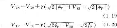 NMOS晶體管的閾值電壓VTN、PMOS晶體管的閾值電壓VTP分別由下式給出: