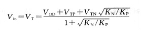 由于邏輯閾值電壓是式(10.1)中的-IDS與式(10.2)中的IDS相等時的電壓,所以應(yīng)用這個關(guān)系能夠求得Vin:
