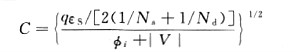 其中,εs≈1.04pF/cm表示硅的介電常數(shù),εs≈εoKs,這里εo表示自由空間( FreeSpace)的介電常數(shù)(εo≈8.86X10-14F/cm);Ks≈ll.7表示硅的相對介電常數(shù)(有時為了簡單也稱為介電常數(shù));Na(Nd)表示每立方厘米中受主原子(施主原子)的數(shù)量。