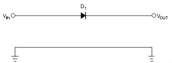 圖1 一只串聯(lián)二極管保護系統(tǒng)不受反向極性影響,二極管有0.7V的壓降
