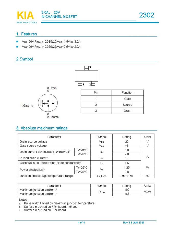 參數(shù): ID(A): 3 BVDSS(V): 20 RDS(ON): 0.065 Qg(nC): 10 Package: SOT-23
