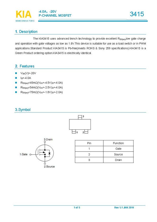 參數(shù): ID(A): -4 BVDSS(V): -16 RDS(ON): 0.045 Qg(nC): 17.2 Package: SOT-23