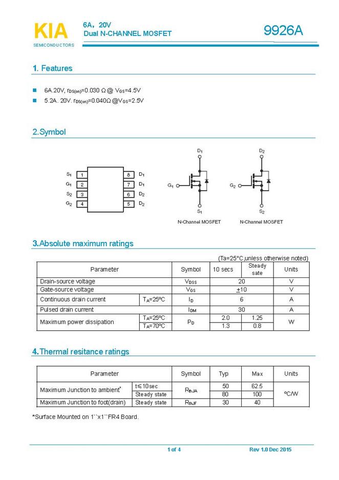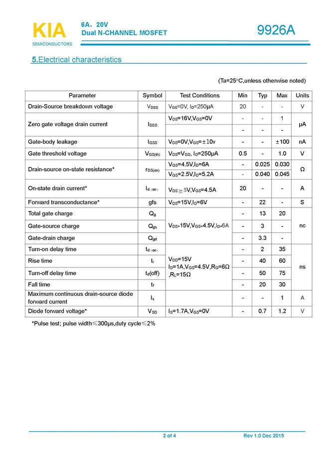參數(shù): ID(A): 6 BVDSS(V): 20 RDS(ON): 0.03 Qg(nC): 20 Package: SOP-8