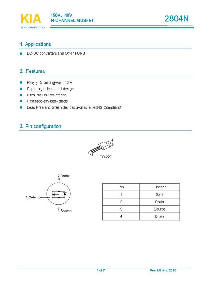 參數: ID(A): 150 BVDSS(V): 40 RDS(ON): 0.003 Qg(nC): 95 Package: TO-220