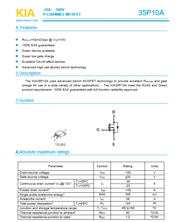 參數(shù): ID(A): -35 BVDSS(V): -100 RDS(ON): 0.042 Qg(nC): 92 Package: TO-252