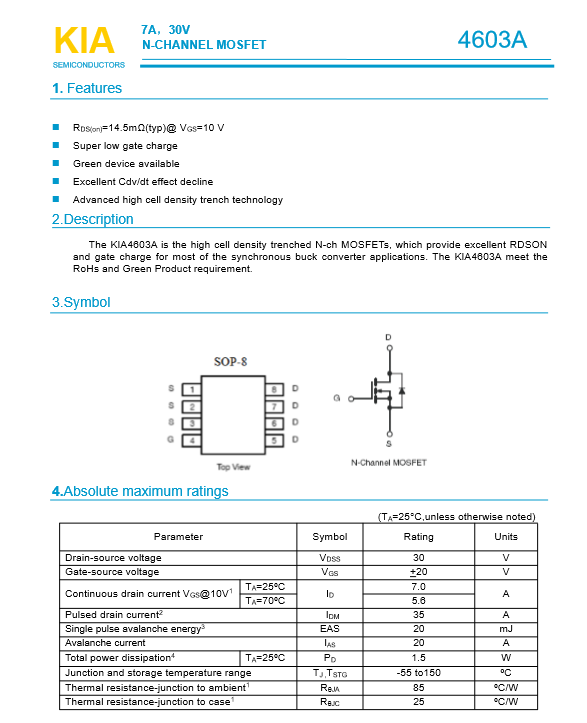 參數(shù): ID(A): 7 BVDSS(V): 30 RDS(ON): 0.0145 Qg(nC): 6 Package: SOT--8