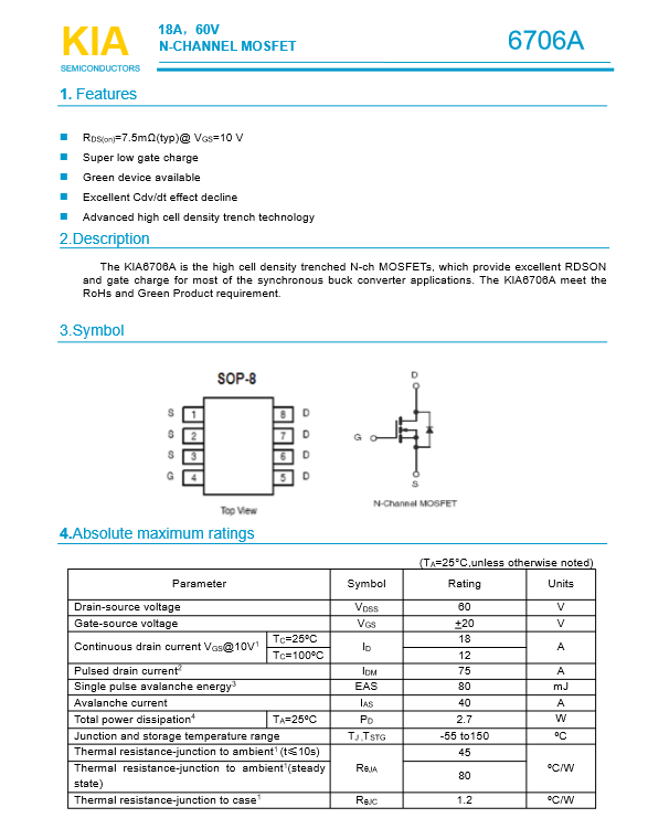 參數(shù): ID(A): 18 BVDSS(V): 60 RDS(ON): 0.0075 Qg(nC): 57 Package: sop-8