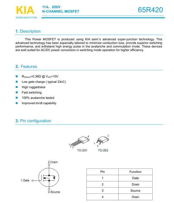參數(shù): ID(A): 11 BVDSS(V): 650 RDS(ON): 0.38 Qg(nC): 33 Package: TO-251、252