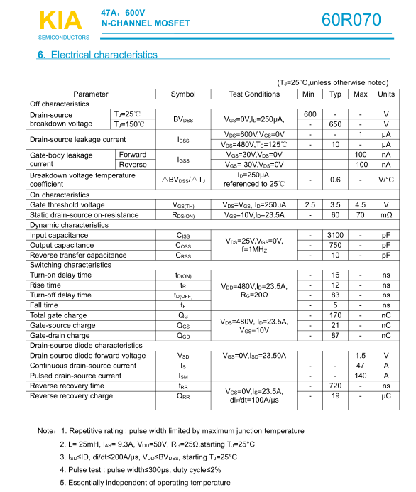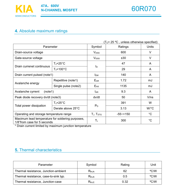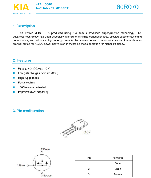 參數(shù): ID(A): 47    BVDSS(V): 600    RDS(ON): 0.06    Qg(nC): 170    Package: TO-3P