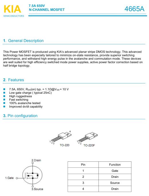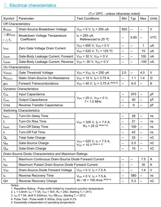 參數(shù): ID(A): 7.5 BVDSS(V): 650 RDS(ON): 1.4 Qg(nC): 25 Package: TO-220F