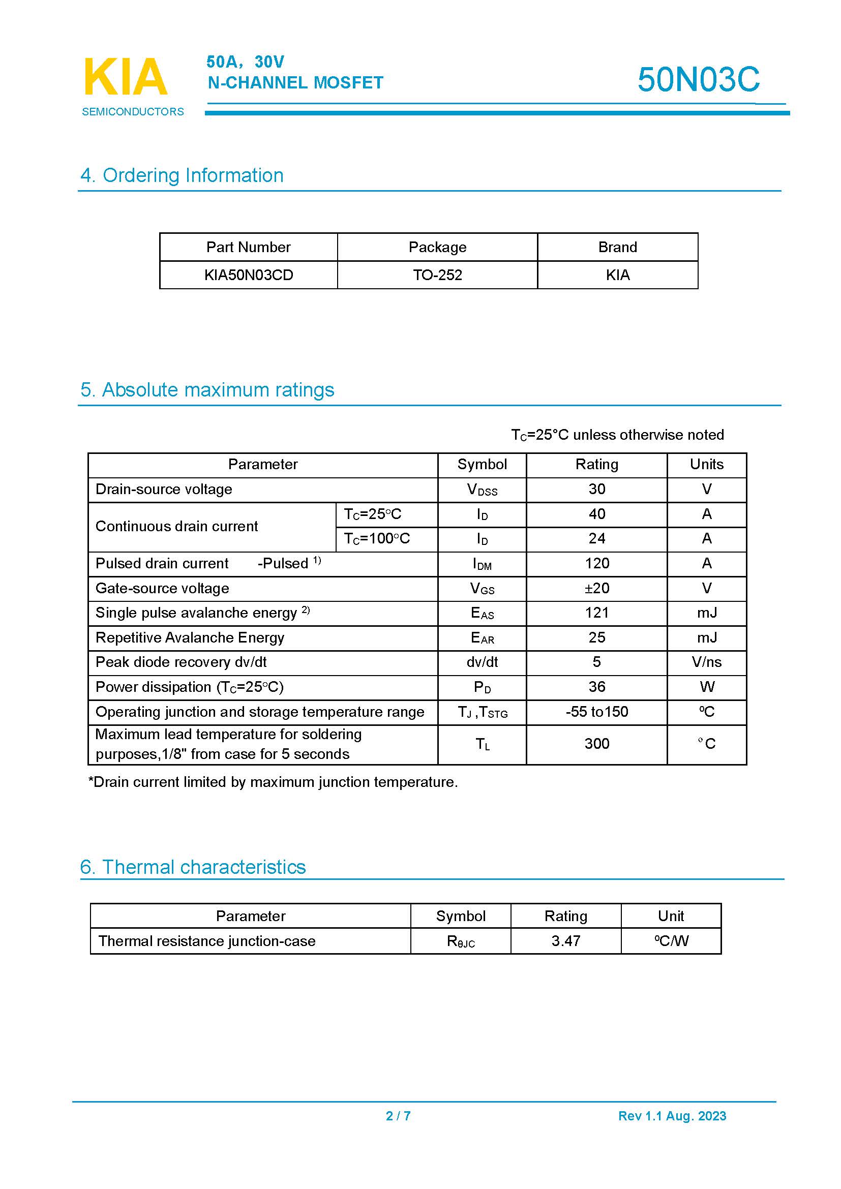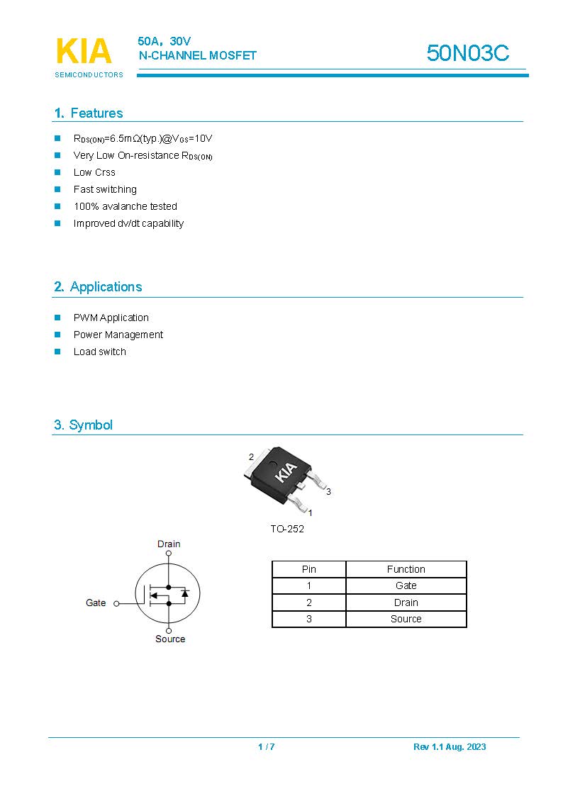 關(guān)鍵詞: KIA50N03C