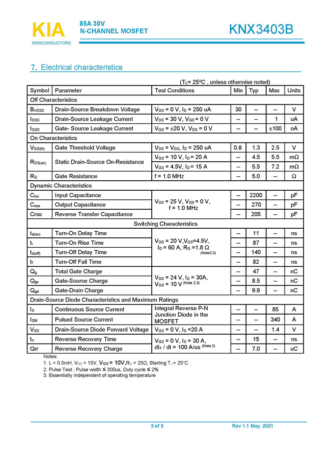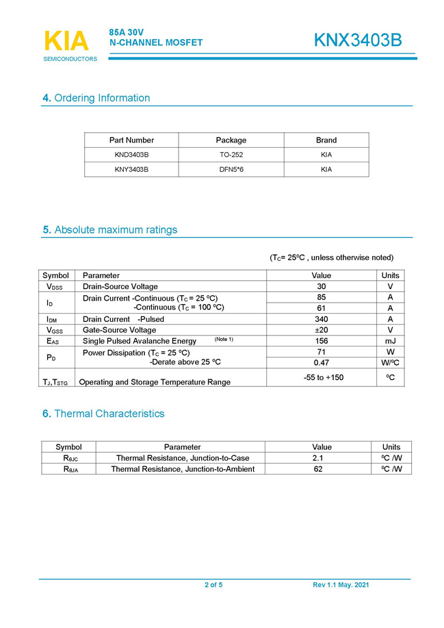 參數(shù): ID(A): 85 BVDSS(V): 30 RDS(ON): 4.5 Qg(nC): 47 Package: TO-252.DFN5*6