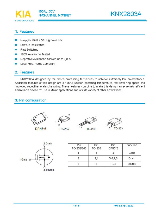 參數(shù): ID(A): 150    BVDSS(V): 30    RDS(ON): 2.2    Qg(nC): 110    Package: TO-252.TO-220.TO-263.DFN5*6