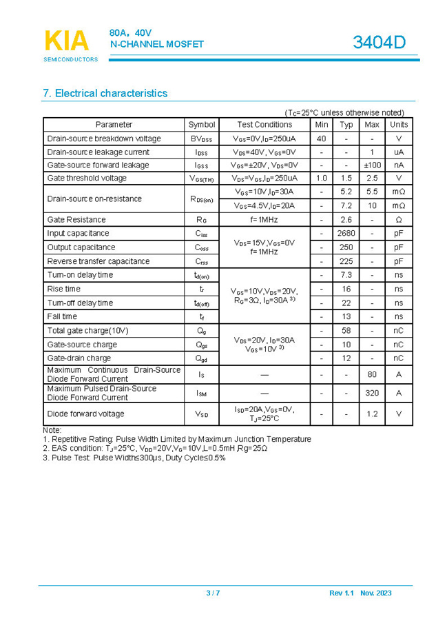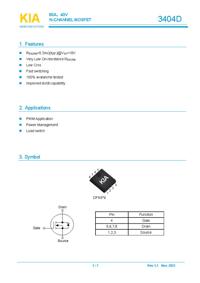 參數(shù): ID(A): 80 BVDSS(V): 40 RDS(ON): 5.2 Qg(nC): 58 Package: DFN5*6