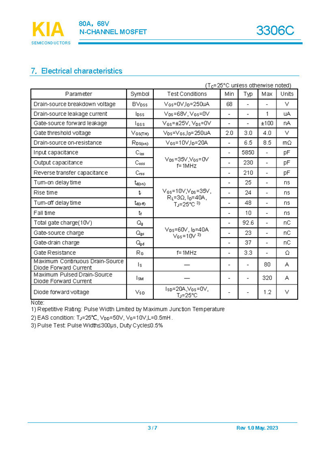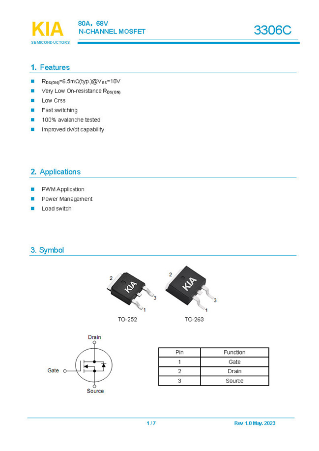 參數(shù): ID(A): 80 BVDSS(V): 68 RDS(ON): 6.5mΩ Qg(nC): 92.6 Package: TO-252/TO-263