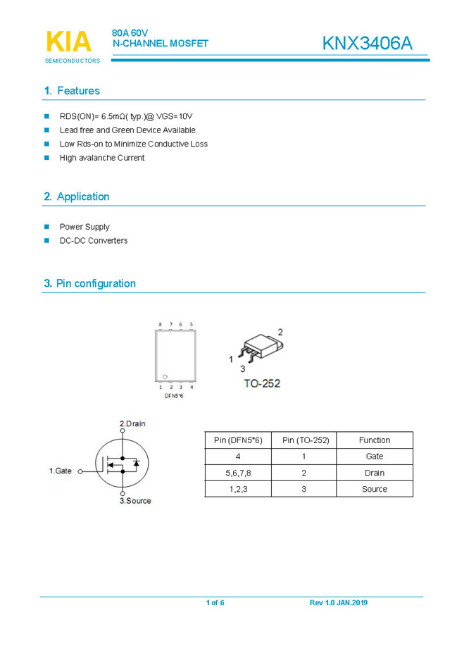 參數(shù): ID(A): 80 BVDSS(V): 60 RDS(ON): 6.5mΩ Qg(nC): 104 Package: DFN5*6/TO-252