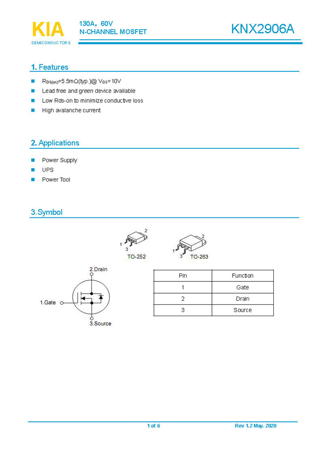 參數(shù): ID(A): 130    BVDSS(V): 60    RDS(ON): 5.5mΩ    Qg(nC): 66.34    Package: TO-252.TO-263