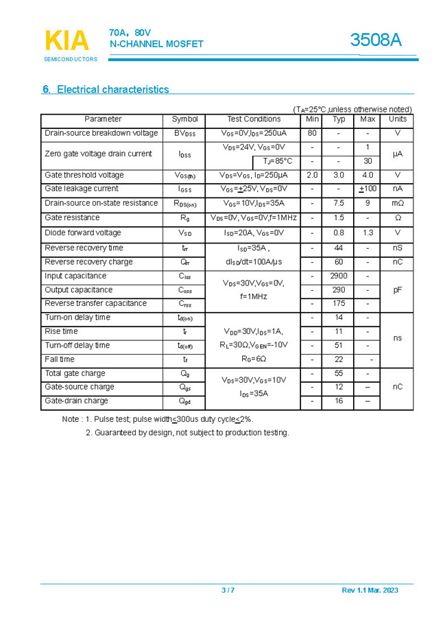 參數(shù): ID(A): 70 BVDSS(V): 80 RDS(ON): 7.5mΩ Qg(nC): 55 Package: TO-252.TO-263.TO-220