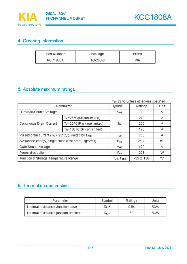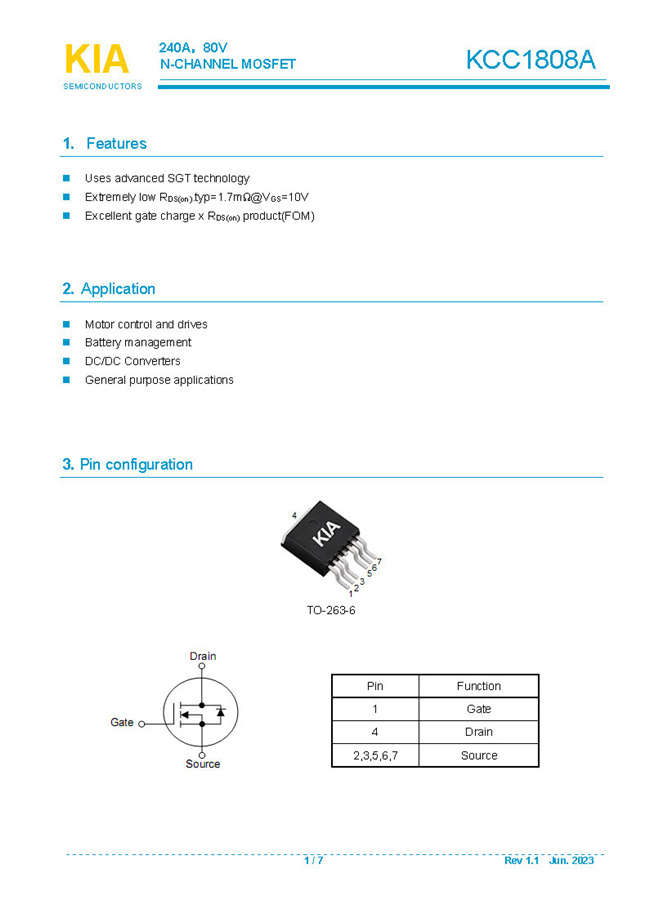 參數(shù): ID(A): 240    BVDSS(V): 80    RDS(ON): 1.7mΩ    Qg(nC): 207    Package: TO-263-6L