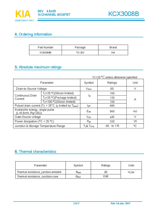 參數(shù): ID(A): 160 BVDSS(V): 85 RDS(ON): 4.5mΩ Qg(nC): 80 Package: TO-263