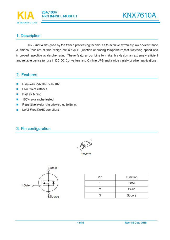 參數(shù): ID(A): 25    BVDSS(V): 100    RDS(ON): 32mΩ    Qg(nC): 55    Package: TO-252