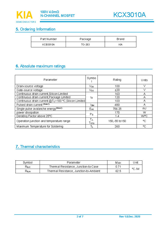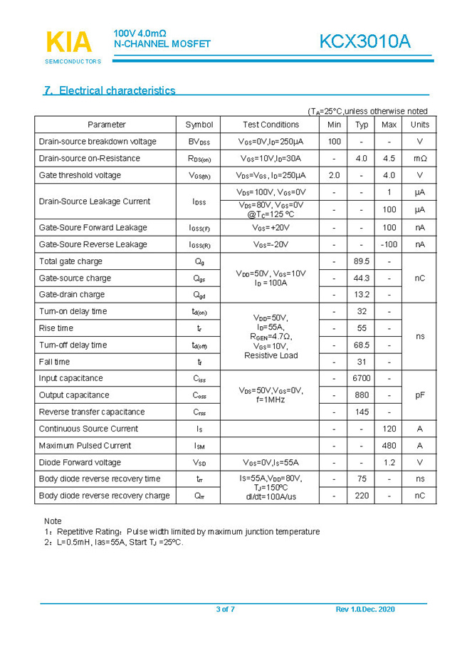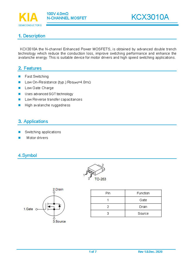 參數(shù): ID(A): 120 BVDSS(V): 100 RDS(ON): 4mΩ Qg(nC): 89.5 Package: TO-263