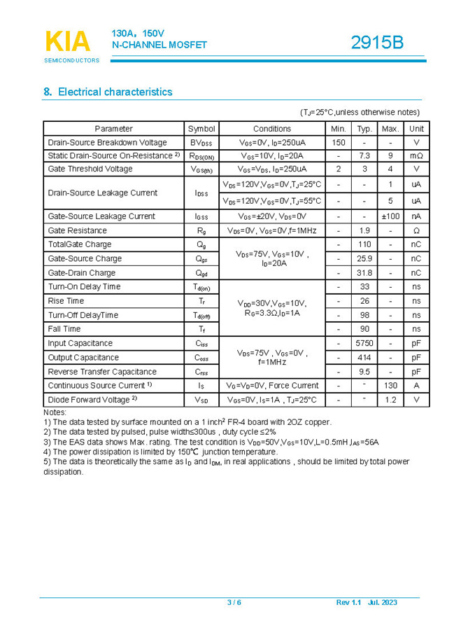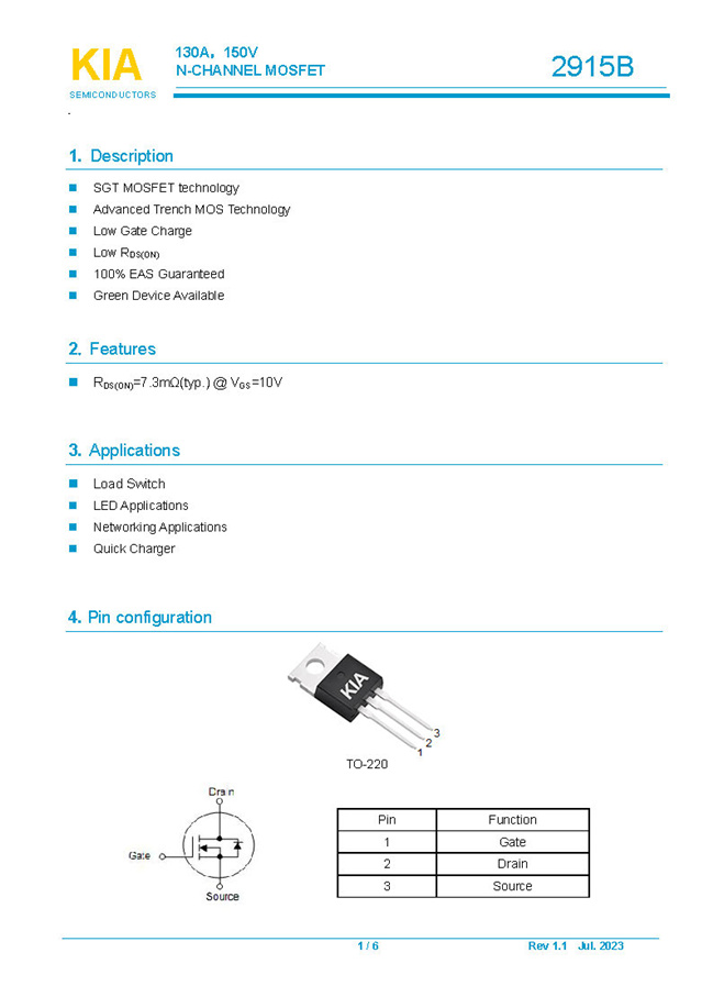 參數(shù): ID(A): 130 BVDSS(V): 150 RDS(ON): 7.3mΩ Qg(nC): 110 Package: TO-220
