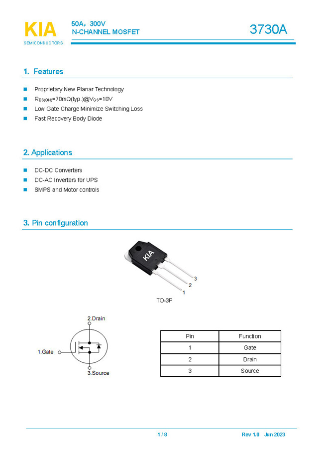 參數(shù): ID(A): 50 BVDSS(V): 300 RDS(ON): 70mΩ Qg(nC): 220 Package: TO-3P