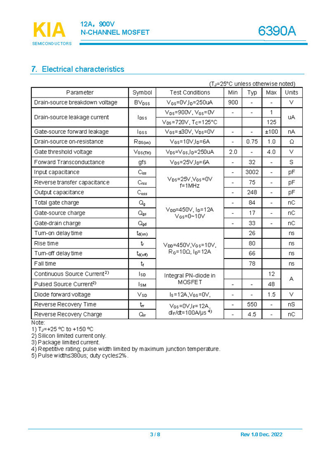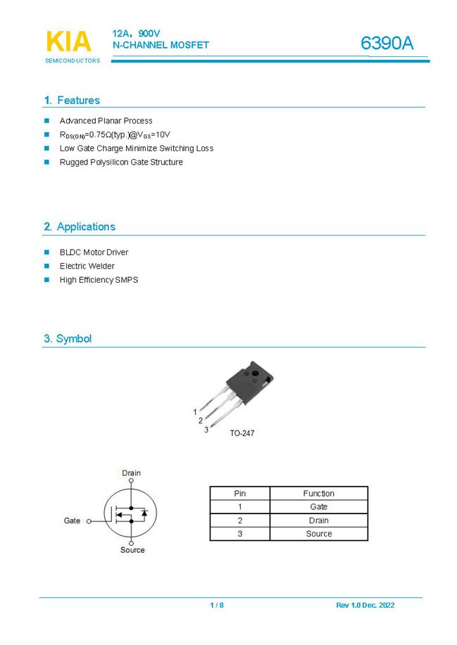 參數(shù): ID(A): 12 BVDSS(V): 900 RDS(ON): 0.75Ω Qg(nC): 84 Package: TO-247