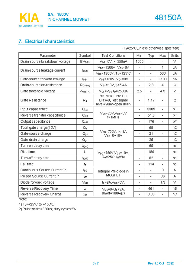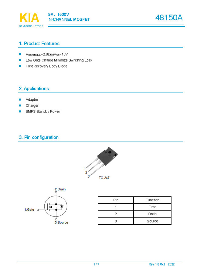 參數(shù): ID(A): 9 BVDSS(V): 1500 RDS(ON): 2.8Ω Qg(nC): 68 Package: TO-247