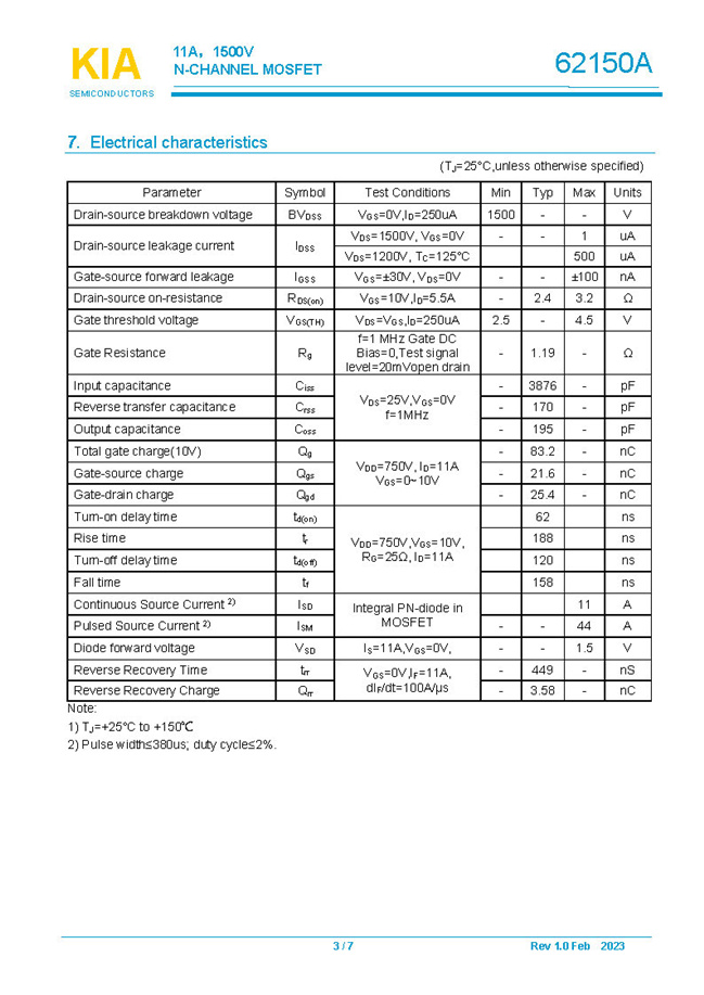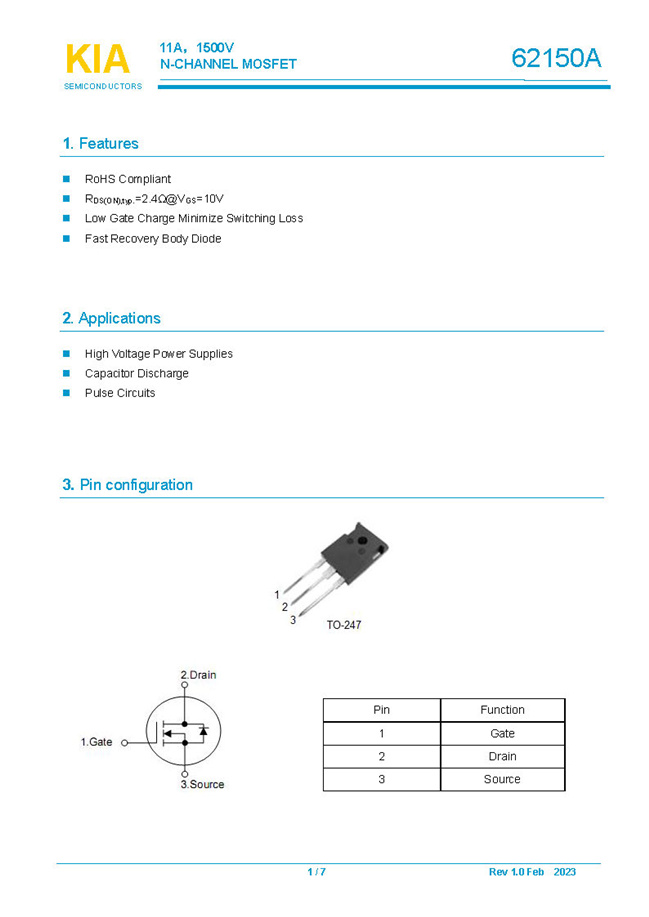 參數(shù): ID(A): 11    BVDSS(V): 1500    RDS(ON): 2.4Ω    Qg(nC): 83.2    Package: TO-247