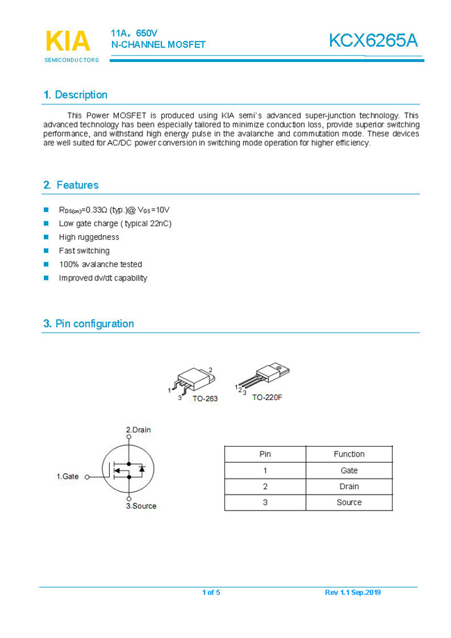 參數(shù): ID(A): 11 BVDSS(V): 650 RDS(ON): 0.33Ω Qg(nC): 22 Package: TO-263、220F