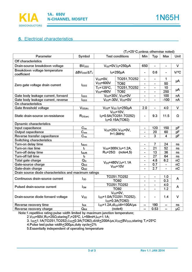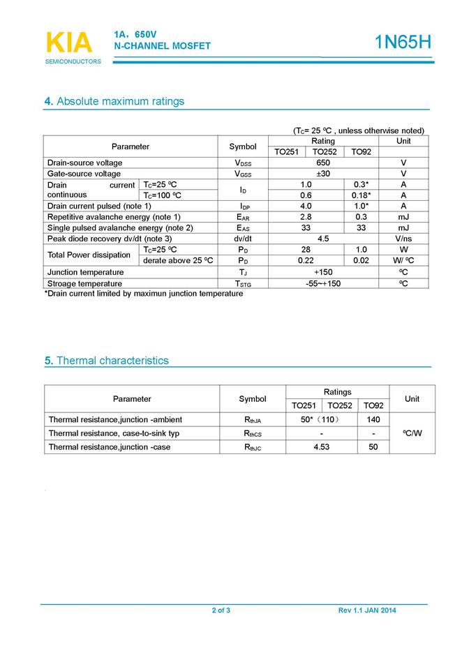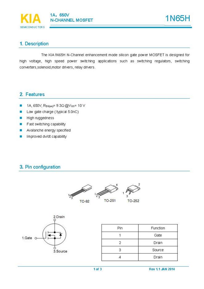 參數(shù): ID(A): 1    BVDSS(V): 650    RDS(ON): 12.2    Qg(nC): 6.2    Package: TO-92、TO-251、TO-252
