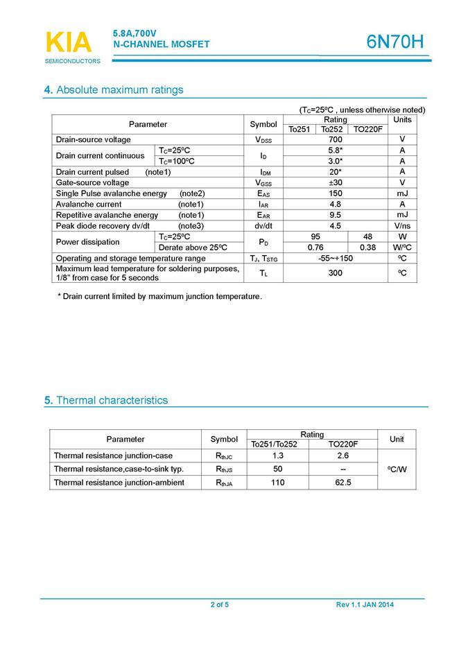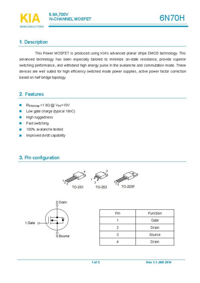 參數(shù): ID(A): 5.8 BVDSS(V): 700 RDS(ON): 2.3 Qg(nC): 16 Package: TO-251、TO-252、TO-220F