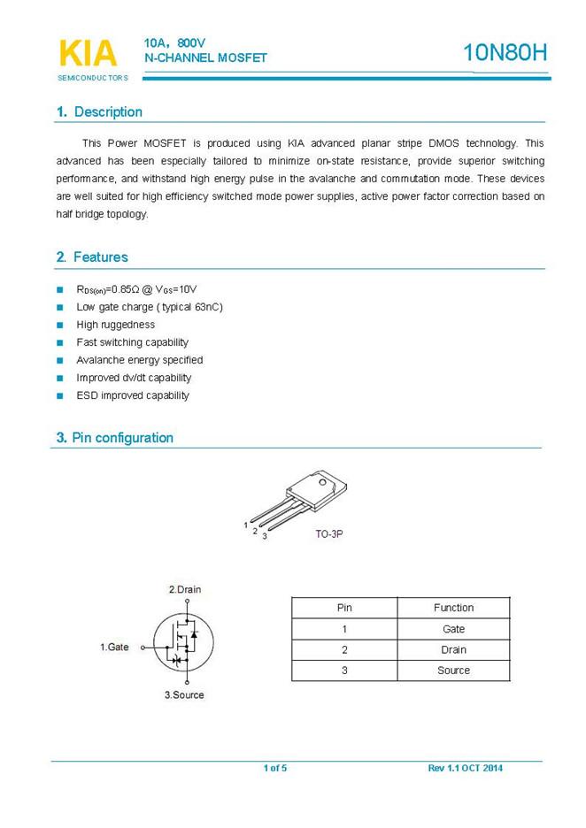 關(guān)鍵詞: KIA10N80H